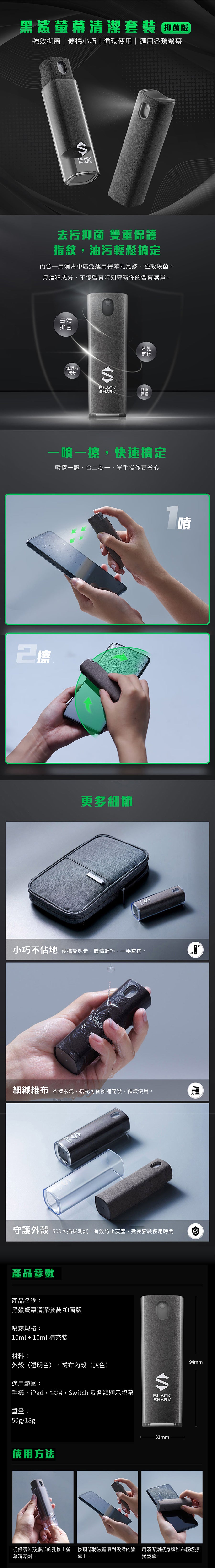 【黑鯊BlackShark】螢幕清潔套裝(抑菌版)